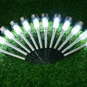 12pcs/Lot Solar Garden LED Light Landscape Garden Yard Path Lawn Stainless Steel Solar Lamps Outdoor Grounding Sun Light