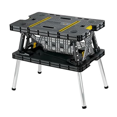 Keter – 197283 Folding Table Work Bench for Miter Saw Stand, Woodworking Tools and Accessories with Included 12 Inch Wood Clamps ? Easy Garage Storage Black/Yellow