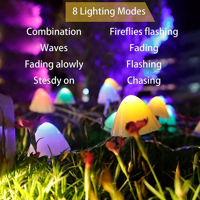 LED solar string lights has shaped by a high simulated mushroom decor,looks like real mushroom in your garden,will beautifully dress up your tree, fence, front path or porch, creating a warm and sweet atmosphere.
