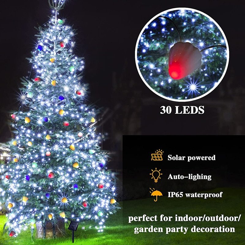 Solar powered string lights own a solar panel that will automatically charge during the day after turned on the switch ,auto on in the night